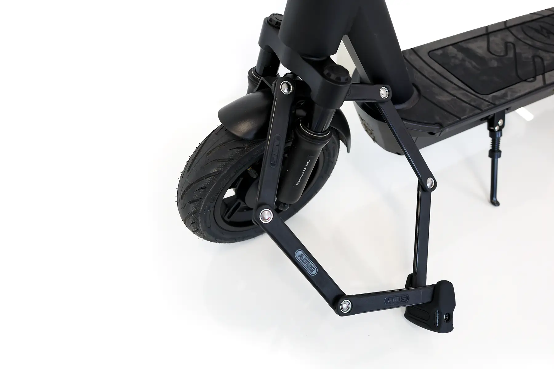 - SH – Schlosshalterung für den einfachen Transport am eScooter. Das Schloss wird frontal aus der Halterung entnommen.