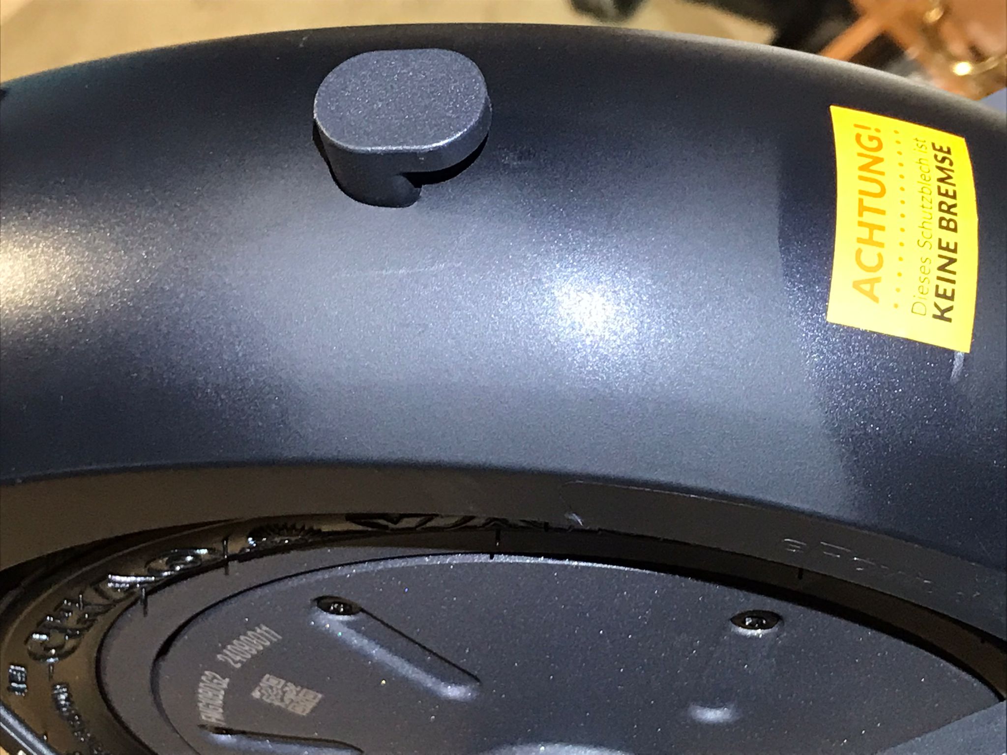 Nicht direkt in Frontlicht, Rücklicht oder Blinker des eScooters blicken. Mögliche Augenschädigung durch grelles Licht. Die Lichter können bei gefährdeten Personen epileptische Anfälle auslösen.