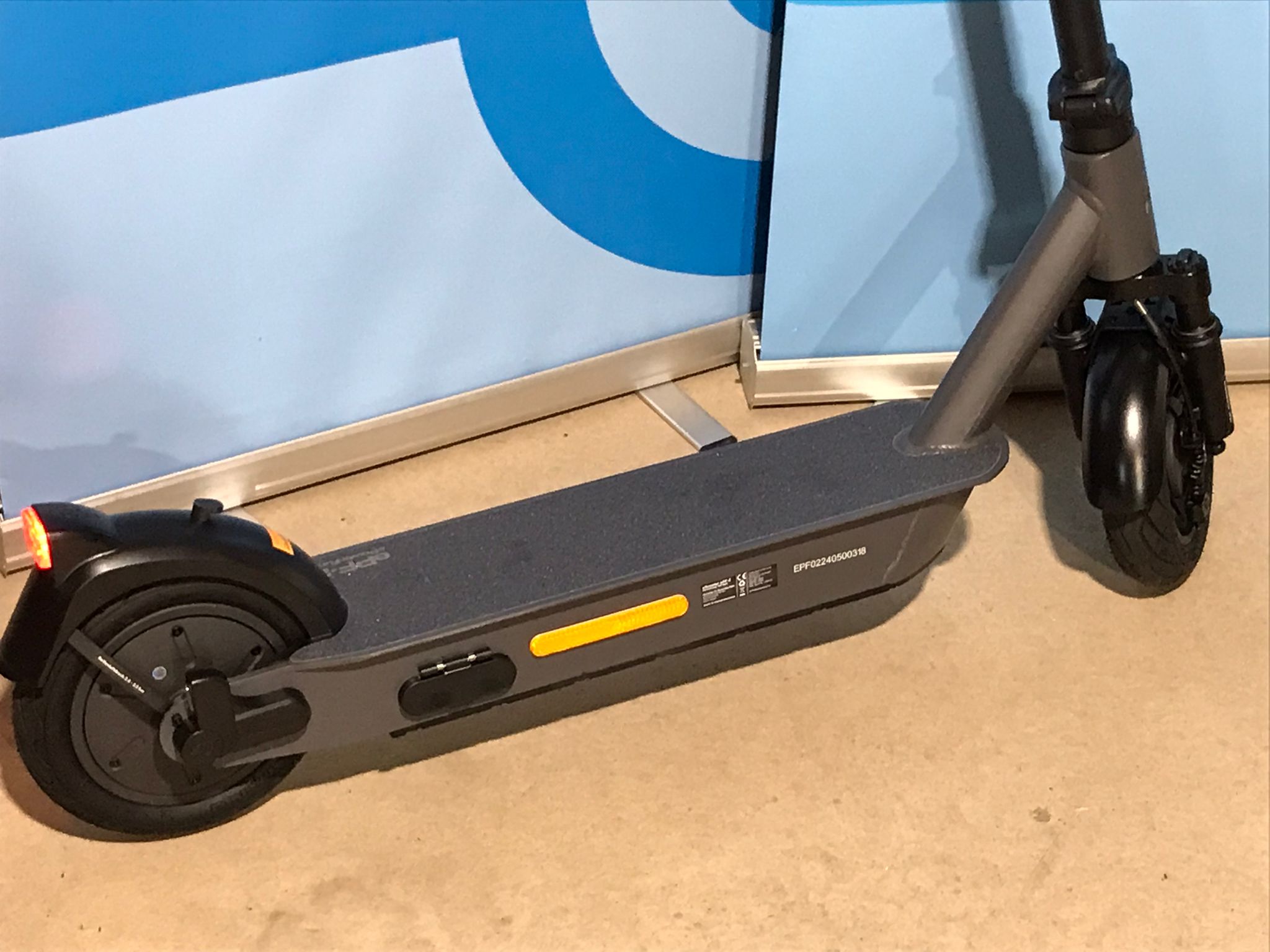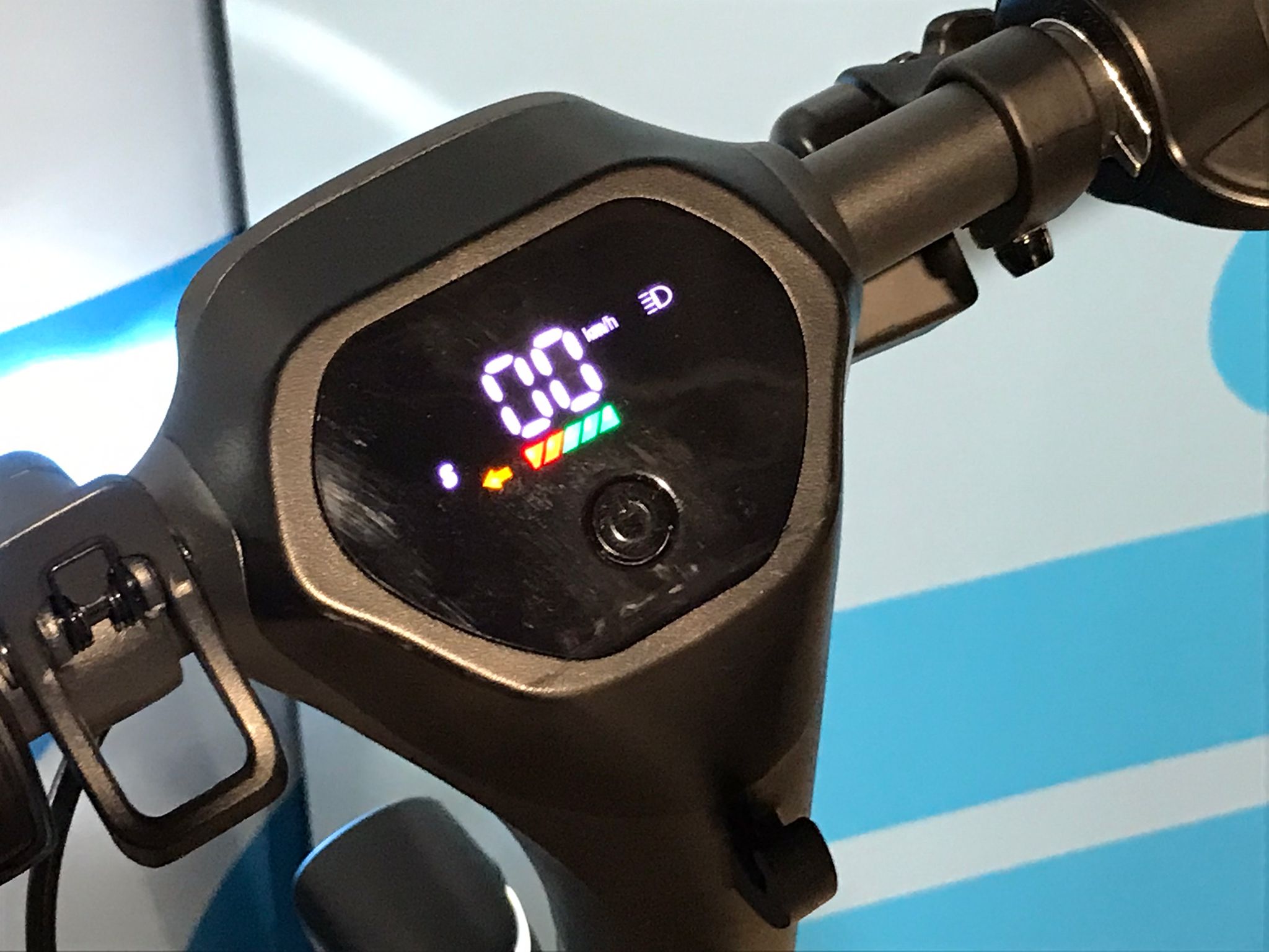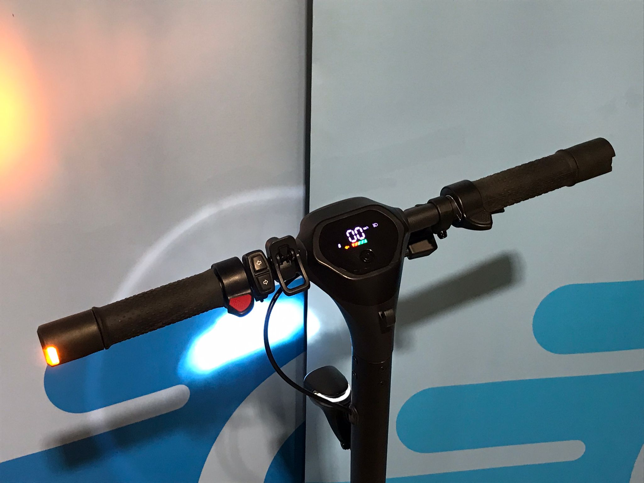 Nicht direkt in Frontlicht, Rücklicht oder Blinker des eScooters blicken. Mögliche Augenschädigung durch grelles Licht. Die Lichter können bei gefährdeten Personen epileptische Anfälle auslösen.