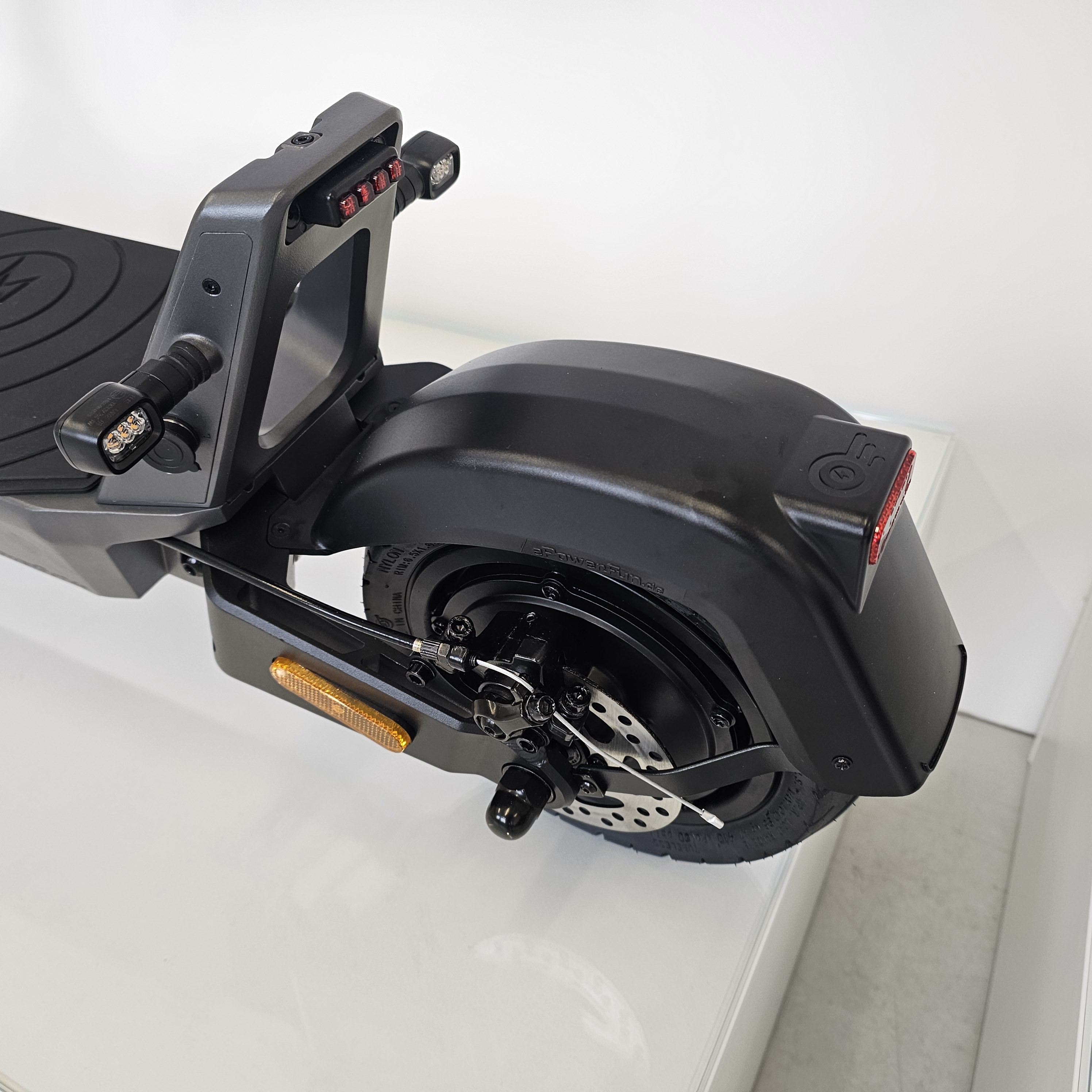 Um Ihren eScooter im öffentlichen Straßenverkehr betreiben zu dürfen, muss er den gesetzlichen Richtlinien entsprechen. Grundsätzlich muss der eScooter mit zwei voneinander unabhängig funktionierenden Bremsen, mit einer Klingel und mit einer bauartgeprüften Lichtausstattung ausgerüstet sein. Erkundigen Sie sich vor der Inbetriebnahme Ihres eScooters über die aktuellen rechtlichen Grundlagen Ihrer Region. Wenden Sie sich dazu an die zuständigen Behörden.