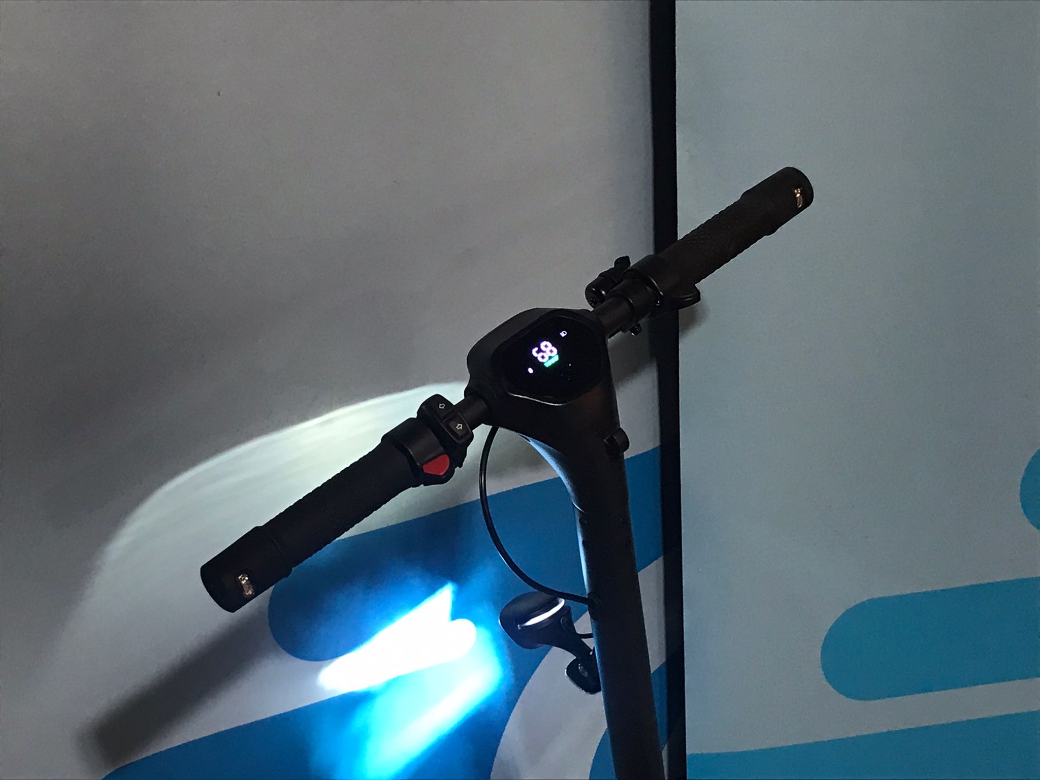 Nicht direkt in Frontlicht, Rücklicht oder Blinker des eScooters blicken. Mögliche Augenschädigung durch grelles Licht. Die Lichter können bei gefährdeten Personen epileptische Anfälle auslösen.